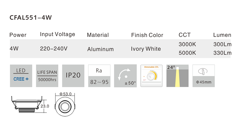 ■This series adopts imported Cree COB LED chip.
