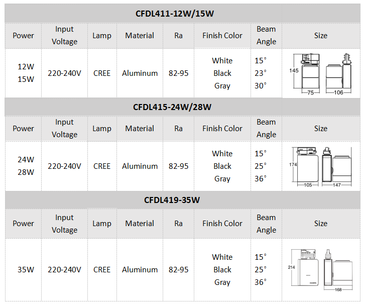 With the simple, exquisite, unique design, the track light has obtained Appearance Design Patent. Being made of international aluminum alloy, the heat sink plays better performance in stability to guarantee the service?life of whole lamp. By using imported .